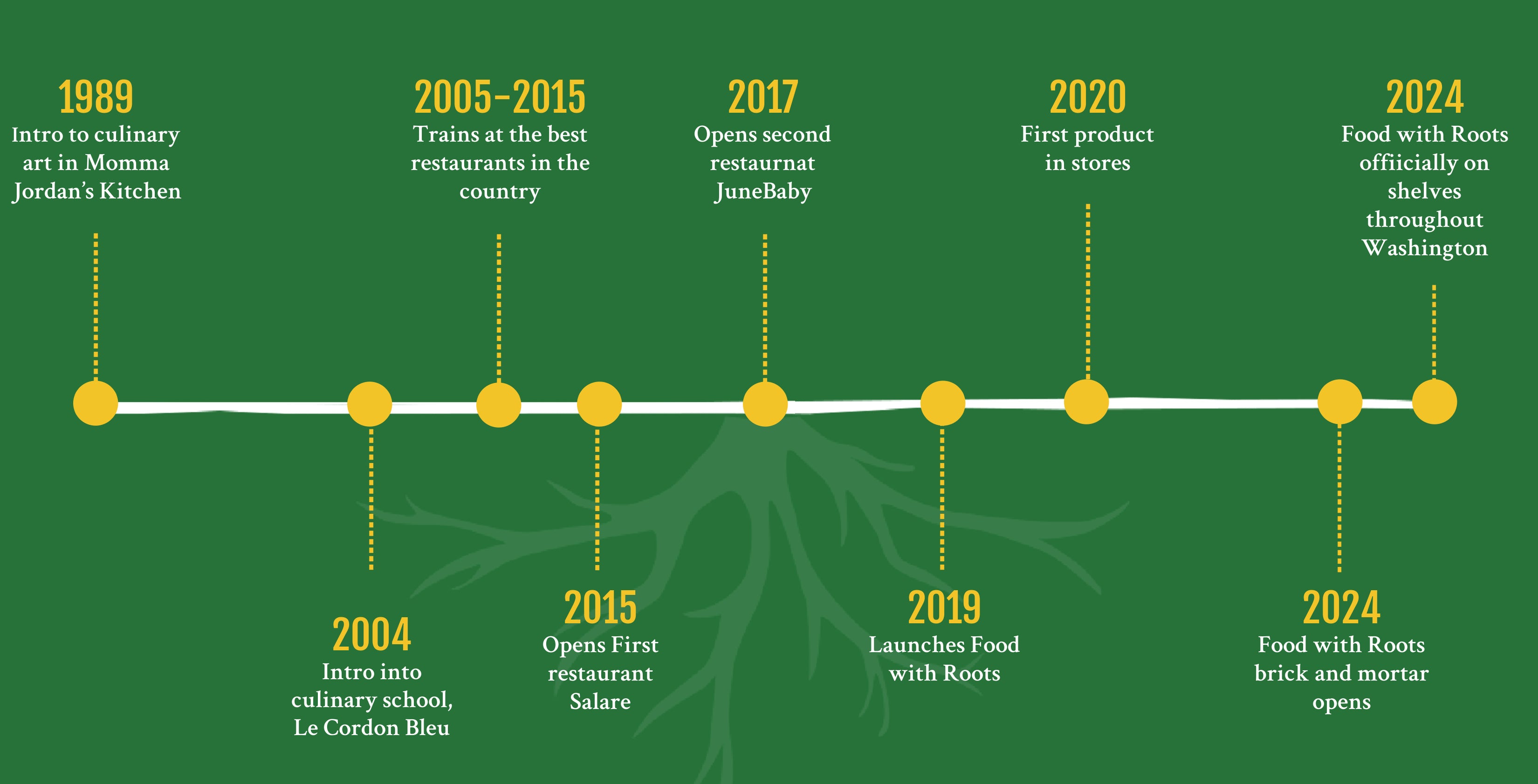 The Food with Roots was created by two-time James Beard Award winning Chef Edouardo Jordan in 2019 to create an outlet for folks to enjoy the delicious spreads, dressings, breads, spices, and clothing that he was making at his restaurants. He began hearing that these items make a perfect late night snack, are the talk of the BBQ, the treat used to jazz up their meal--however you decide to use it, our goodies will do the job.